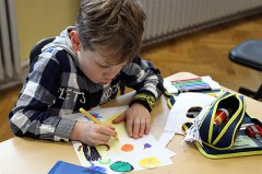 Während draußen verschiedene Schattierungen von Grau vorherrschten, explodierten im Innern der Franziskusschule leuchtende Farben und sorgten für gute Laune.